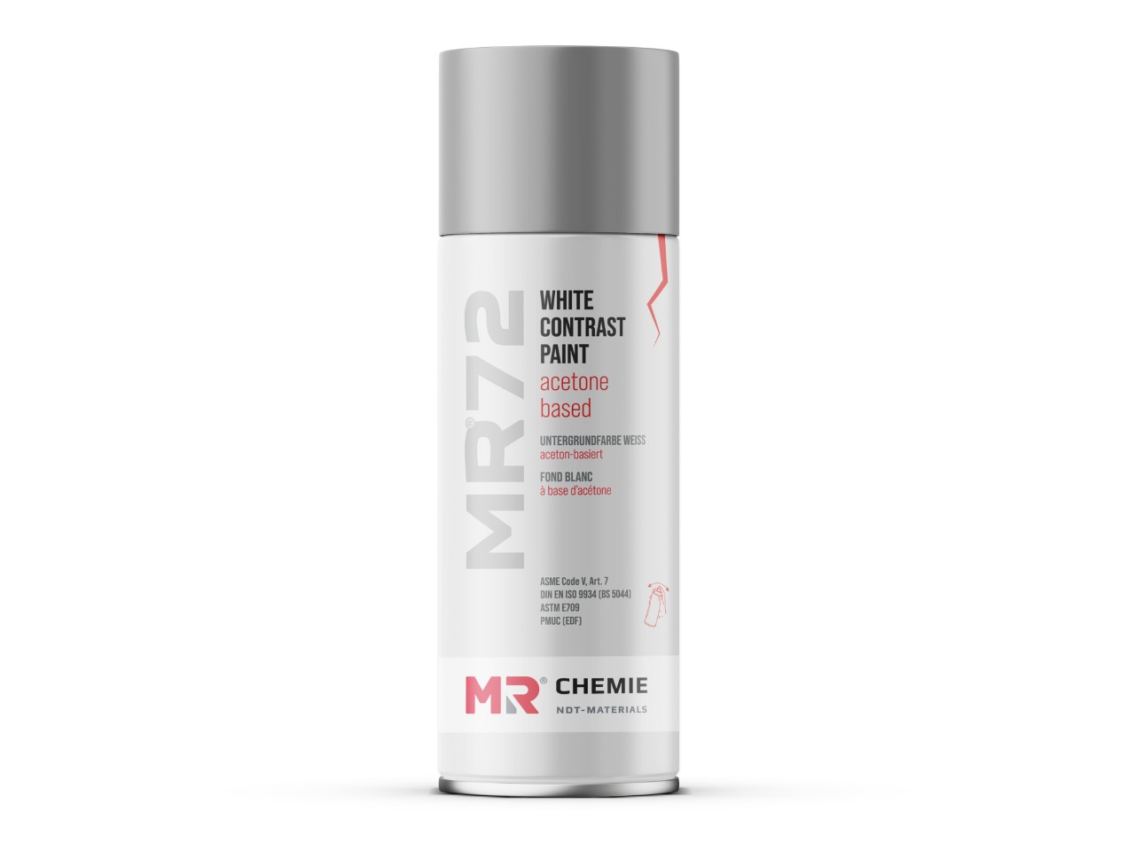 MR®72 is a specially formulated quick drying coating material which serves to lighten the test surface when performing non-fluorescent magnetic particle inspection by forming a smooth white film to improve probability of detection and sensitivity. Version of MR72 may vary in select countries.