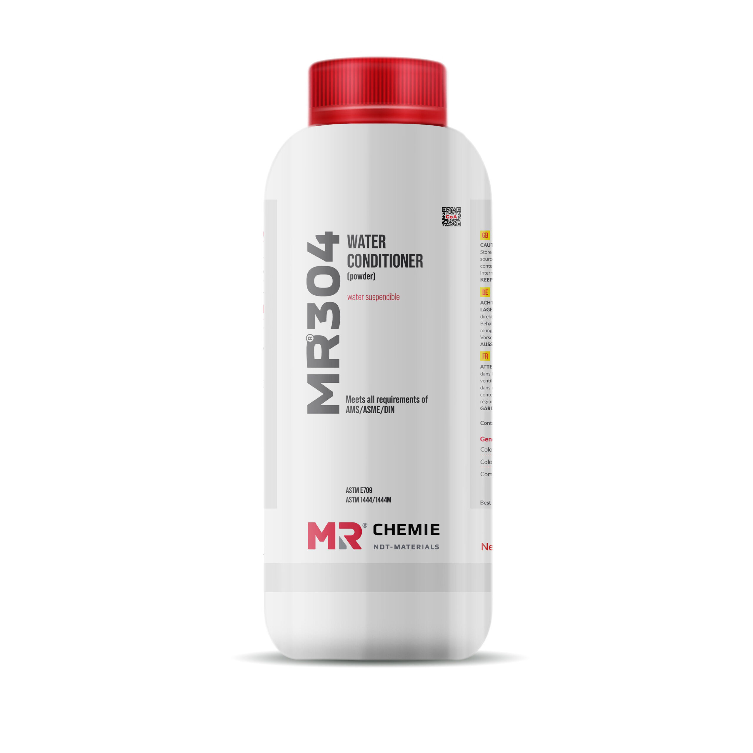 MR®304 is a general-purpose blend of wetting agents, corrosion inhibitors and anti-forming agents water-conditioning powder to enhance surface wetting and magnetic particle dispersion stability in water-based magnetic particle suspensions. It is added to the water bath and mixed until dissolved prior to addition of magnetic powder (oil & water based).